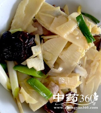 2、冬笋切片,与香菇、精盐、白糖、味精、淀粉、熟色拉油拌和。