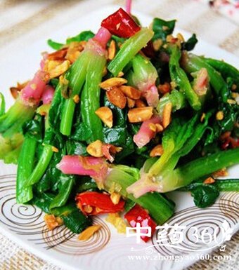 花生拌菠菜营养分析:菠菜含有大量的植物粗纤维,具有促进肠道蠕动的作用,利于排便。花生和芝麻都有补锌的功效。