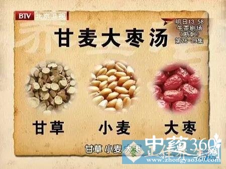 这款汤剂中的小麦是养心液的,而且还能和肝阴,有消烦止汗的功效;甘草泻心火,大枣补血,调和脾胃。