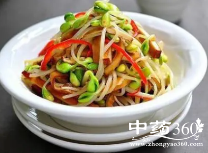 做法:选用300克生菜、150克小萝卜、100克苦瓜、5个小红辣椒、30克绿豆;将绿豆泡一个晚上,然后煮软,把水倒掉,再焖一会儿;趁热用1大勺香油和少许食盐拌匀,放置10分钟;之后将生菜、苦瓜、小萝卜、小红辣椒切成方便吃的尺寸;各种材料混在一起,加入适量白糖、1小匙熟芝麻、少许食醋拌匀,即可食用。