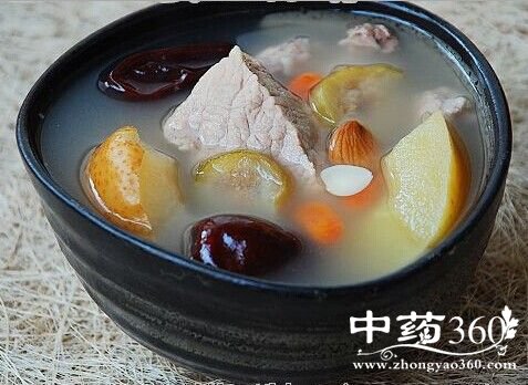 猪骨洗净切块,汆水捞起;将适量清水倒入瓦煲烧开,放入所有材料武火煮沸,转文火煲两个小时,下盐调味饮用。滋润养颜、补脾健胃。