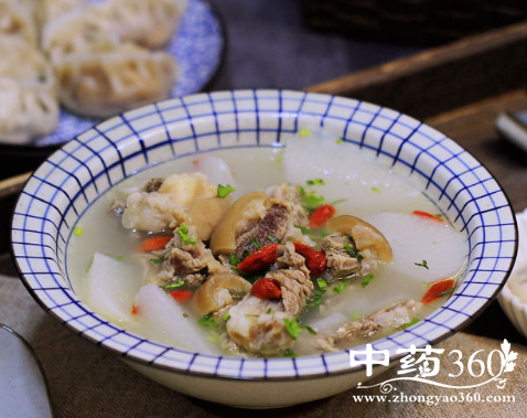 羊肉300g、党参15g;黄芪15g,当归10g,红枣8颗、桂圆肉50g、青萝卜100g,生姜5片,盐4g。