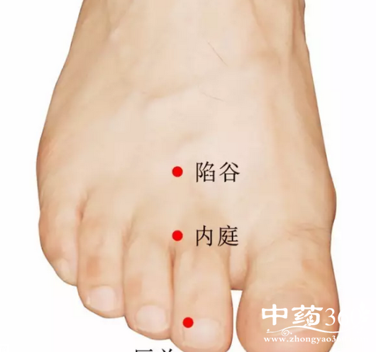 内庭穴的主治症状为:急慢性胃炎、急慢性肠炎、齿龈炎、扁桃体炎、跖趾关节痛等。配合谷主治牙龈肿痛;配太冲、曲池、大椎等主治热病。