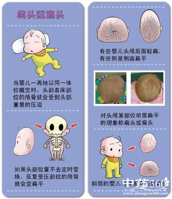 对于头型,只要对称,不论是侧睡引起的前后径长,左右径窄的尖头,还是前后径短,左右径宽的扁头,都是正常。我个人认为顺其发展。但头型不对称,出现偏头、歪头,应及时矫正。