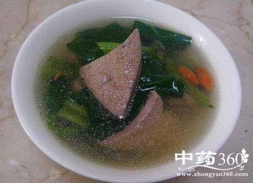枸杞子猪肝汤枸杞子适量,猪肝适量,同煲成汤。猪肝所含维生素A丰富,二者搭配养血明目。