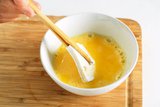 4 之后将鸡蛋搅打均匀,再将沾好面粉的豆腐蘸上蛋液。