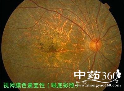 夜盲是最早期的症状,多出现于青春期。以后缓慢发生视野缩小,但中央视力可长期保持,晚期形成管状视野。双眼表现对称。病程早期,仅见赤道部视网膜色素稍紊乱;以后赤道部视网膜血管旁出现骨细胞样色素沉着,并向后极部及锯齿缘方向发展。视盘呈蜡黄色萎缩,视网膜小动脉变细,视网膜呈青灰色,变薄,黄斑色暗。玻璃体内出现细胞及混浊。常见后囊下混浊的并发性白内障。