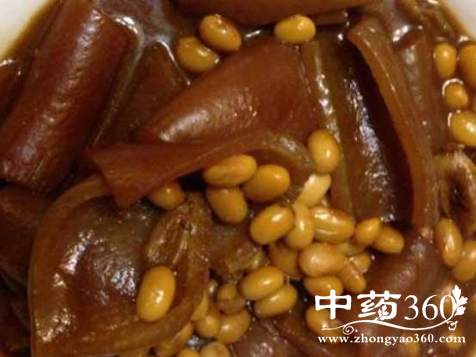 材料:黄豆、花生、猪皮、八角、老姜、料酒、盐。