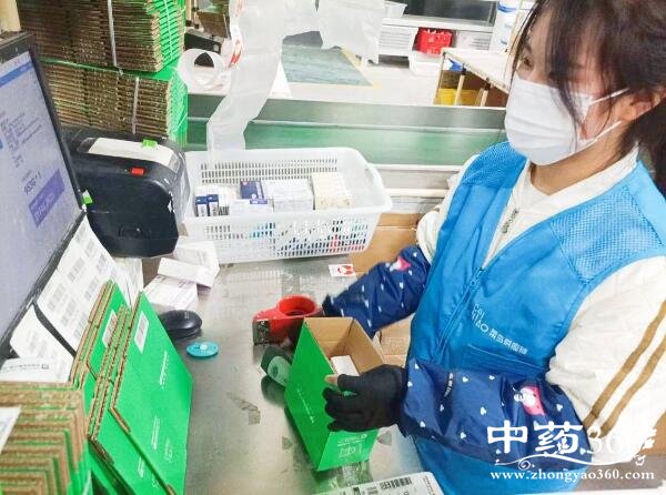 菜鸟医疗器械仓内工作人员正在打包药品