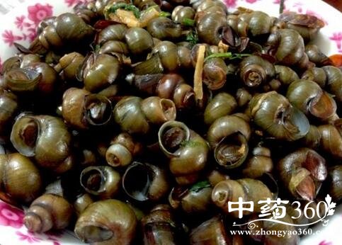 4 把田螺淘洗干净后倒入清水盆里,滴入少许香油,精盐养两天让其吐净肚内赃物。