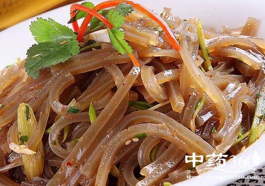 《随息居饮食谱》:猪肤甘凉,清虚热,治下利、心烦、咽痛。若无心烦咽痛兼证者,是寒滑下利,不宜用此。