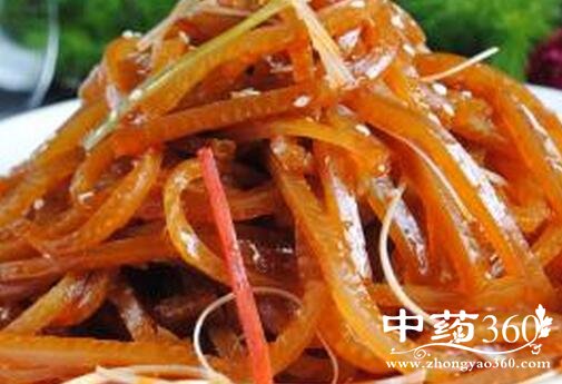 还有,胶原蛋白是构成人体筋与骨不可缺少的营养素,而且还促进毛发、指甲生长。祖国的医学也认为,猪皮味甘、性凉,有滋阴补虚,清热利咽的功能。要想秀发飘逸,肉皮真的别轻易丢弃。