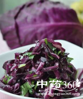现代营养学发现,紫甘蓝的粗蛋白、碳水化合物与纤维素含量明显高于菠菜、白菜等常见蔬菜,维生素C含量为橘子的两倍,矿物质钙含量约为牛奶的一半。尤其是紫甘蓝中含有丰富的植物化学物质——花青素,这是一种抗氧化剂,能够保护人体免受自由基的损伤,不仅有抗衰老、抗癌、提高机体免疫力的作用,还能增强血管弹性,抑制炎症和抗过敏。囯外调查发现,由于花青素有很强的抑制癌细胞增殖的作用,所以常吃紫甘蓝的人群发生胃癌、结肠癌的概率明显低于不吃或少吃的人群。特别是在吃烧烤、腌渍等食品时,吃点紫甘蓝能对致癌物起到抑制作用。