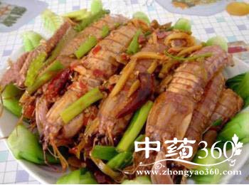 皮皮虾:虾营养丰富,其肉质松软,易消化,对身体虚弱以及病后需要调养的人是极好的食物;虾中含有丰富的镁,能很好的保护心血管系统,它可减少血液中胆固醇含量,防止动脉硬化,同时还能扩张冠状动脉,有利于预防高血压及心肌梗死;虾肉还有补肾壮阳,通乳抗毒、养血固精、化瘀解毒、益气滋阳、通络止痛、开胃化痰等功效。芦笋:芦笋是一种高档而名贵的蔬菜,含有多种维生素和微量元素的质量优于普通蔬菜,其蛋白质组成具有人体所必需的各种氨基酸,含量比例恰当,无机盐元素中有较多的硒、钼、镁、锰等微量元素,还含有大量以天门冬酰胺为主体的非蛋白质含氮物质和天门冬氮酸。经常食用对心脏病、高血压、心率过速、疲劳症、水肿、膀胱炎、排尿困难等病症有一定的疗效。同时芦笋对心血管病、血管硬化、肾炎、胆结石、肝功能障碍和肥胖均有益。而且芦笋对于淋巴腺癌、膀胱癌、肺癌、肾结石、皮肤癌以及其它癌症、白血症等也有很好效果。