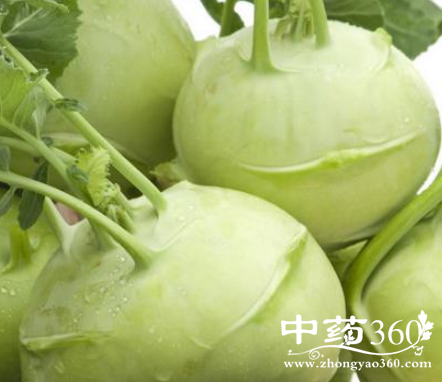苤蓝是十字花科草本植物甘蓝的茎叶,形状如球,是甘蓝的一种,学名叫球茎甘蓝。苤蓝是介于大头菜和包心菜之间的蔬菜,可以拿来清蒸当做小菜,或切丝做成凉拌沙拉。它的维生素C含量极高,还含有大量的钾,而维生素E的含量非常丰富。