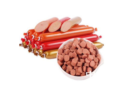 火腿肠详情 | 图片简介 火腿肠是深受广大消费者欢迎的一种肉类食品,它是以畜禽肉为主要原料,辅以填充剂(淀粉、植物蛋白粉等),然后再加入调味品、香辛料等物质,采用腌制、斩拌、高温蒸煮等加工工艺制成,其特点是肉质细腻、鲜嫩爽口、携带方便、食用简单、保质期长。