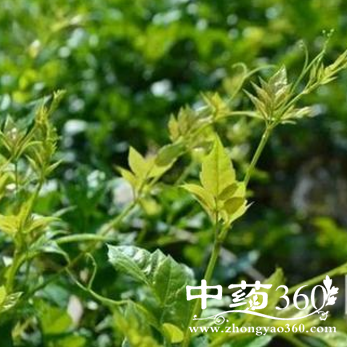 藤茶,为葡萄科植物大叶蛇葡萄的枝叶。夏季采摘嫩枝叶,置沸水中稍烫一下,即时捞起,沥干水分,摊放通风处吹干,至表面现有星点白霜时,即可烘干收藏。
