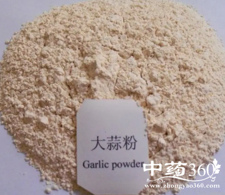 大蒜粉,通过大蒜素油添加载体制备而成的粉剂。大蒜是天然的植物广谱抗菌素,大蒜约含2%的大蒜素,它的杀菌能力是青霉素的1/10,对多种致病菌如葡萄球菌、脑膜炎、肺炎、链球菌及白喉、痢疾、伤寒、副伤寒、结核杆菌和霍乱弧菌,都有明显的抑制和杀灭作用。