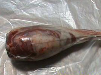 识别绵羊肉和山羊肉:一看颜色。绵羊肉肌肉呈暗红色,肉纤维细而软肌肉间夹有白色脂肪,脂肪较硬且脆。山羊肉肉色较绵羊肉淡,有皮下脂肪,只在腹部有较多的脂肪,其肉有膻味;二看肉上未去净的羊毛形状。绵羊肉毛卷曲,山羊肉毛硬直;三看肋骨。绵羊肉肋骨窄而短,山羊肉肋骨宽而长。