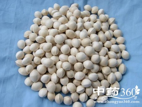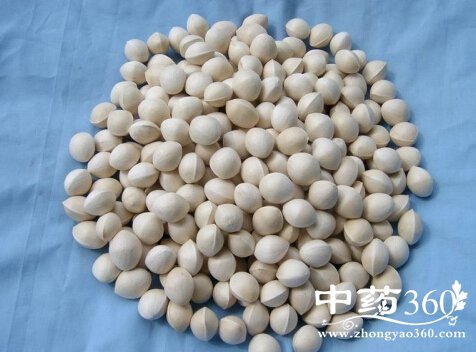 (2)白果去壳,把白果放到热水里浸片刻,撕衣,取出绿色胚芯。