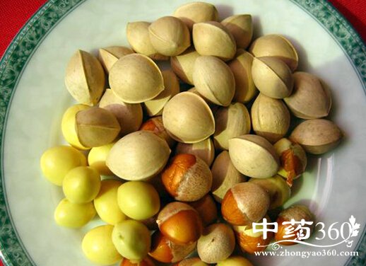 (1)拾掇新鲜干白果。用钳子咬住白果的双楞,轻轻咬开硬壳,将业已去壳的白果仁放进沸水里煮2——3分钟,捞出浸于冷水中再去掉果皮。