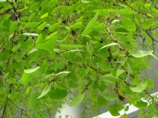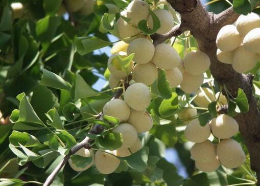 【原形态】落叶乔木,高可达40m。枝有长枝与短枝,幼树树皮淡灰褐色,浅纵裂,老则灰褐色,深纵裂。叶在长枝上螺旋状散生,在短枝上3-5(-8)簇生;柄长3-10cm;叶片扇形,淡绿色,无毛,有多数2叉状并列的细脉,上缘宽5-8cm,浅波状,有时中央浅裂或深裂。雌雄异株,花单性,稀同株;球花生于短枝顶端的鳞片状叶的腋内;雄球花成柔荑花序状,下垂;雌球花有长梗,梗端常分2叉,每叉顶生一盘状珠座,每珠座生一胚珠,仅一个发育成种子。种子核果状,椭圆形至近球形,长2.5-3.5cm,径约2cm;外种皮肉质,有白粉,熟时淡黄色或橙黄色;中种皮骨质,白色,具2-3棱;内种皮膜质,胚乳丰富。花期3-4月,种子成熟期9-10月。