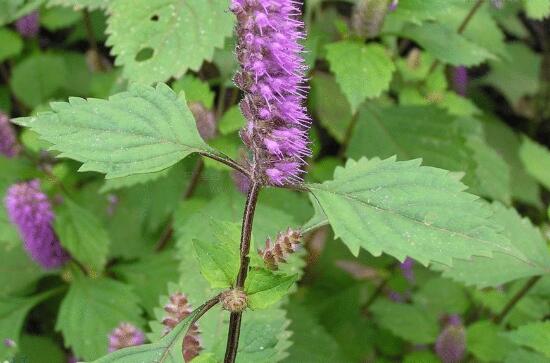 【原形态】多年生草本。茎直立,方形,高30~100厘米,下部疏被白色柔毛,上部密被白毛。叶对生,有柄,叶片长椭圆形或披针形,长4~6厘米,宽1.8~2厘米,先端渐尖,基部楔形,两侧下延,边缘有钝齿,上面脉上有细柔毛,下面广布白柔毛。穗状轮伞花序腋生及顶生;苞片鳞片状,后渐脱落;萼钟状,近相等的5齿裂;花冠淡紫色,2唇形,上唇直立,先端微凹,下唇3裂;雄蕊4,其中2枚突出;花柱短。小坚果卵形,平滑。花期夏秋。