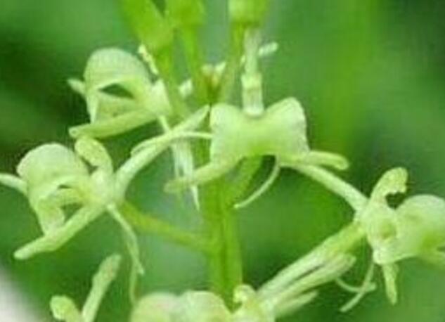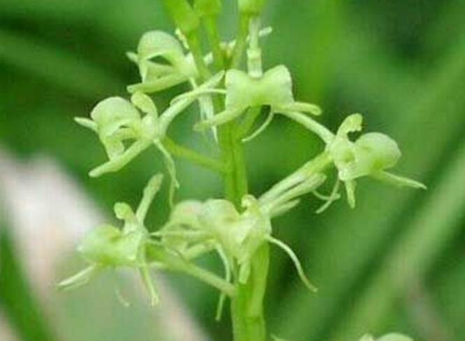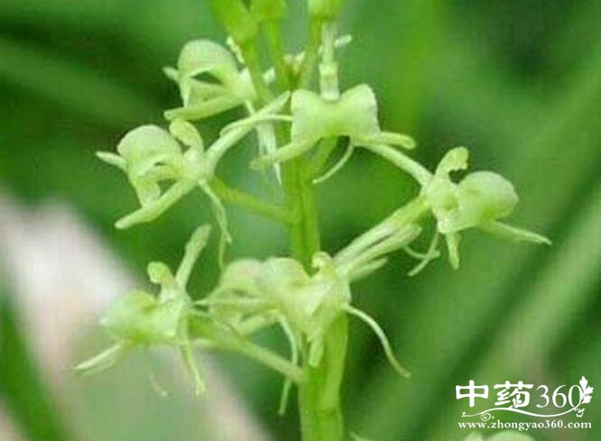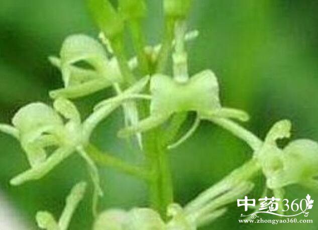 【原形态】多年生草本,高30~40厘米。根茎横生。茎无毛,不分枝。叶互生;近基部叶约3片,叶片狭长圆形或披针形,长14~18厘米,全缘,无毛,叶脉平行,基部鞘状;茎上部及中部的叶小,披针形,长8~20毫米。总状花序顶生;花淡黄绿色,长约1厘米,无毛;花被唇瓣有长距,距细,长6~8毫米。