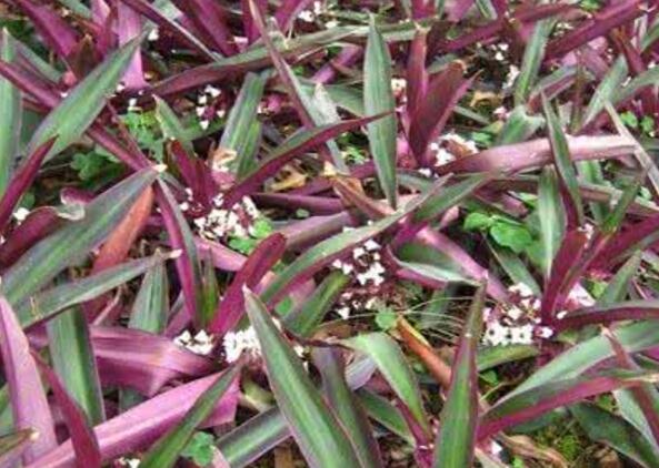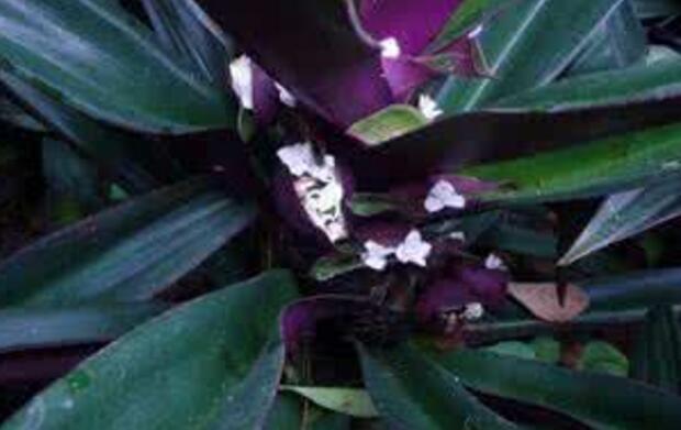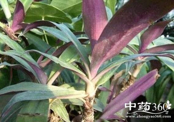 【原形态】紫万年青 多年生草本,高50cm。茎较粗壮,肉质。节密生,不分枝。叶基生,密集覆瓦状,无柄;叶片披针形或舌状披针形,长10-30cm,宽2-6cm,先端渐尖,基部扩大成鞘状抱茎,上面暗绿色,下面紫色。聚伞花序生于叶的基部,大部藏于叶内;苞片2,蚌壳状,大而扁,长3-4cm,淡紫色,包围花序,花多而小,白色;萼片3,长圆状披针形,分离,花瓣状;花瓣3,分离,卵圆形;雄蕊6,花丝被长毛;子房3室。蒴果2-3室,室背开裂。花期5-7月。