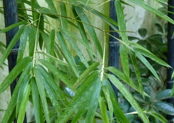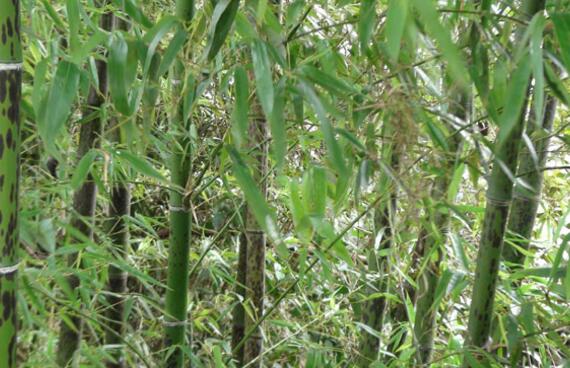 【原形态】桂竹 植株木质化,呈乔木状。地下茎(竹鞭)节晨长25-45mm,直径粗16-20mm,实心或中空,具芽一侧为深沟,微呈两侧压扁,每节除芽外,尚有小瘤状突起14-16个;芽单生,三角卵形,表面有光泽,长约1cm,中央有纵裂。竿高可达20m,粗达15cm,幼竿无毛;节间长达40cm,壁厚约5mm;竿环稍高于箨环;箨鞍革质,背面黄褐色,有时带绿色或紫色,有较密的紫褐色斑块与小斑点和脉纹,流生脱落性谈褐色刺毛;箨导小形或大形而呈镰状,紫褐色,繸毛通常生长良好;箨舌拱形,淡褐色或带绿色,边缘生有纤毛;箨片带状,中间绿色,两侧紫色,边缘黄色,平直或偶可在顶端微皱曲、外翻。末级小技具2-4叶;叶耳半圆形,繸毛发达,常呈放射状;叶舌明显伸出,拱形或有时截形;叶片长5.5-15cm,宽15-2.5cm。花枝呈穗状,长5-8cm,基部有3-5片逐渐增大的鳞片状苞片;佛焰苞6-8片,叶耳小形或近于无,繸毛通常存在,短。缩小叶圆卵形至线状披针形。基部收缩呈圆形,上端渐尖呈芒状,每片佛馅苞眼内具1校或有时:枚、稀可3枚的假小穗,推基部1-3片的苞胶内无假小穗而苞早落;小穗披针形,长2.5-3cm,含1或2(-3)朵小花;小穗轴呈针状延伸于最上孕性小花的内稃后方。其顶端常有不同程度的退化小花,节间均具细柔毛;颖1片或无;外种长2-2.5cm,被微毛,先端渐尖呈芒状;内停稍短于外稃,除2脊外,通常先端有微毛;鳞被菱状长椭圆形,长3.5-4mm,花药长11-14mm:花柱较长,柱头3,羽毛状。笋期5月下旬