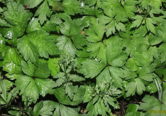 【原形态】多年生草本,高40-100cm。全株无毛。根茎粗短,有许多细长支根,茎直立,有纵沟纹,下部不分枝,上部几次叉状分枝。基生叶叶柄长10-30cm,基部有透明的膜质鞘;叶片近圆形至圆心形,常3全裂,少至5裂,中裂片楔状倒卵形,长3-10cm,宽4-13cm,两侧裂片各有1深裂,很少不裂,边缘有大小不等的尖锐重锯齿;茎生叶逐渐变小,通常3裂,裂片边缘有大小不等的尖锐重锯齿。伞形花序二至三回叉式分枝;总苞片叶状,3裂或近羽状分裂;伞辐2-3;小总苞片8-10,卵状披针形;小伞形花序有花6-10;萼齿窄线形,顶端渐尖;花瓣倒卵形,白色或绿白色,花柱与萼齿近等长。双悬果球状圆卵形,长4-5mm,宽3-4mm,皮刺直立,顶端钧状,基部膨大;果实的横剖面近圆形,胚乳腹面略凹陷,油管5,合生面通常2,大而显着。花、果期4-10月。