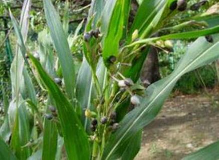【原形态】川谷 多年生草本,高1-1.5m。须根较粗,黄白色,径约3mm。秆粗壮,直立丛生,多分枝,基部节上生根。单叶互生;叶片条形至披针形,长10-40cm,宽1-4cm,先端渐尖,基部宽心形,中脉粗厚而明显,两面秃净,边缘粗糙;叶鞘光滑,鞘口无毛;叶舌质硬,长约lmm。总状花序1至数枝,由上部叶鞘内抽出,长3-8cm;雄小穗覆瓦状排列于穗轴之每节上,成上举或点垂的总状花序;雌小蕊包藏于骨质总苞内;总苞卵形或近球形,长8-10mm,宽6-8mm,成熟时光亮而坚硬,近白色、灰色或蓝紫色。花、果期7-10月。