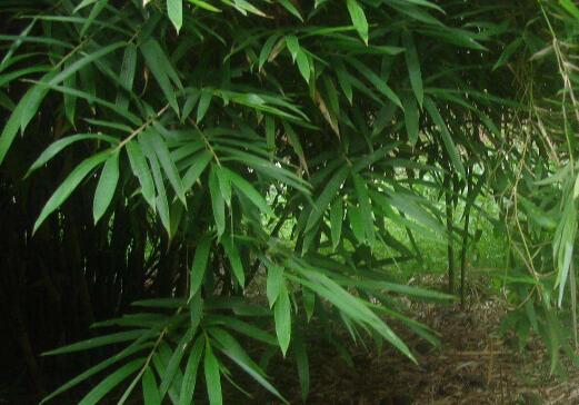 慈竹竿每节约有20条以上的分枝,呈半轮状簇聚生长,水平伸展开去,主枝稍显着,其下部节间长可达10厘米,径粗5毫米。末级小枝具有数叶;叶鞘长4-8厘米,无毛、具纵肋、无鞘口;叶舌截形呈棕黑色,高约1-1.5毫米,上缘呈啮蚀状裂开;叶片窄呈披针形,大都长10-30厘米,宽1-3厘米,质薄且先端渐细尖,基部呈圆形或楔形,上表面没有毛,下表面被有细柔毛,次脉5-10对,小横脉不复存在,叶缘通常比较粗糙;叶柄长约2-3毫米。