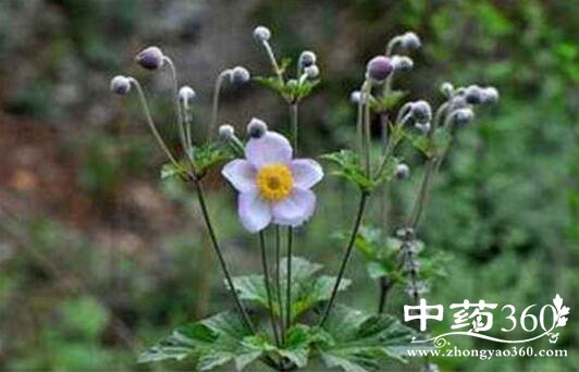 【原形态】大火草,多年生草木,高40-150cm。根茎粗0.5-2cm。基生叶3-4;叶柄长16-48cm,密被白色短绒毛;三出复叶,间或有1-2叶为单叶;小叶卵形,长9-16cm,宽7-12cm,先端急尖,基部心形或圆形,3裂,边缘有不规则小裂片和锯齿,上面有糙伏毛,下面密被白色绒毛,中央小叶柄长5.2-7.5cm;侧生小叶稍斜,形状似中央小叶,但叶柄较短。聚伞花序二至三回分枝,密被白色短绒毛;苞片3,轮生,叶状,不等大,有时为1,3深裂;花梗长3.5-6.8cm,有短绒毛;花两性,萼片5,花瓣状,粉红色或白色,倒卵形或宽倒卵形,长1.5-2.2cm,宽1-2cm,下面被短绒毛;花瓣无;雄蕊多数,长约为萼片长的1/4;心皮400-500,长约1mm,密被绒毛。花期7-10月,果期8-11月。