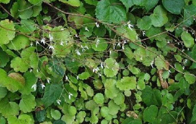 【原形态】峨屏草 多年生草本,高6-12cm。根茎横走,直径约2mm。单叶可过15枚,均为基生;叶柄长1.1-6.5cm,被褐色腺柔毛;叶片革质,卵形或椭圆状卵形,长0.8-3.5cm,宽0.5-2.8cm,先端急尖,基部圆形或浅心形,边缘具粗锯齿,两面疏生褐色腺柔毛,脉不明显。花小,顶生,排成疏散、尖塔形的总状花序,花葶疏被腺柔毛;苞片钻形,长约3mm;花梗细,长约4mm;花萼白色,钟状,5-8列近基部,列片披针形,先端急尖,两面无毛,边缘具极小腺毛,单脉;无花瓣;雄蕊8-10,长达3mm;心皮2,下部合生,子房近上位,1室,花柱2。蒴果长约4mm,2果瓣叉开。花、果期4-10月。