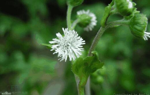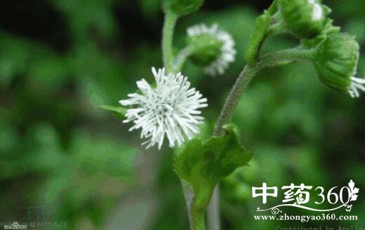 头状花序有梗,长1~3厘米,直径7~10毫米;总苞半圆形,苞片2层,狭椭圆形,长约5毫米,先端圆钝,基部稍有连合;管状花,长2.5毫米,上部钟形,5齿裂;花柱分枝伸出。瘦果倒椭圆形,长约4毫米,上部圆钝,下部窄狭,全体具腺点或细瘤;冠毛4枚,长约1毫米,基部连合成环。花期9~10月。生于水边及低湿地。我国大部分地区有分布。