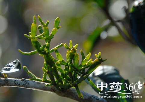 药材基源: 为桑寄生科植物枫香槲寄生或扁枝槲寄生的带叶茎枝。