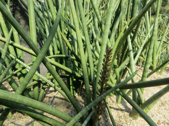 光棍树别名绿玉树、光枝树,大戟科大戟属,原产非洲。野外生长的绿玉树可高达9米,但在室内很少会超过1米多。植株幼小时,分枝上有小型的叶,但是很快就会消失,只剩下肉质的枝。植株的茎呈圆柱状、绿色,大多向上生长,每隔一定的距离便分叉长成两支大小相等的分枝!