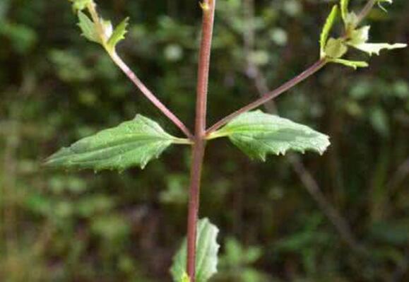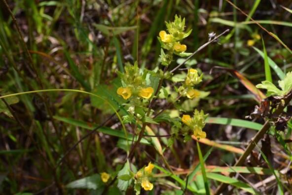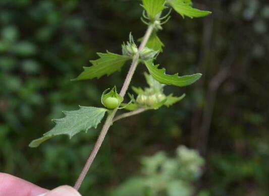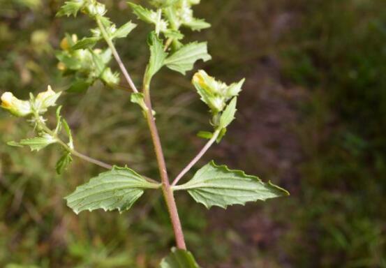 【原形态】矮小草本。全株被粗毛。单叶对生,卵圆披针形或披针形,长2~3厘米,宽1~1.5厘米,边缘有锯齿;无柄。花腋生于顶部叶间,呈总状花序,花柄有对生的小苞片2枚;萼阔钟状,叶状,后来膨大,裂片镊合状排列;花冠唇形,黄色,裂片5,阔,覆瓦状排列;雄蕊4,内藏。蒴果藏于萼内,室裂。