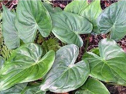 处方:野芋头10斤、大米半斤、白盐2两、水40斤、先将野芋切碎,洗净与大米白盐混合,锅炒30分钟,至大米炒成黑色,放水40斤,再煮30分钟,至米烂时,即可服用,每服半口盅,日三次,至退热为止。