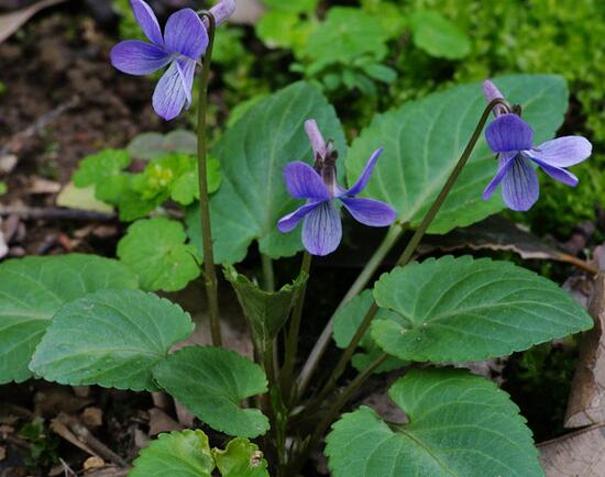 多年生草本。主根粗短,白色。叶丛生,长卵形至三角状卵形,长2—6厘米,宽1.5—4厘米,先端钝,基部心形,边缘具钝锯齿,下面稍带紫色,两面及叶柄稍有毛或无毛;托叶白色,具长尖,有稀疏的线状齿;叶柄长2—8厘米,上端有狭翅。花梗长6—12厘米,中部有线状小苞片2枚。花两性,花萼5,披针形,长5—7毫米,附属物上常有钝齿;花瓣5,紫色,倒卵状椭圆形,长约1.5厘米,距长约7毫米;雄蕊5;子房上位,1室,柱头三角形凸状。蒴果长圆形,裂瓣有棱沟,长6—10毫米。花期4月。果期5—8月。