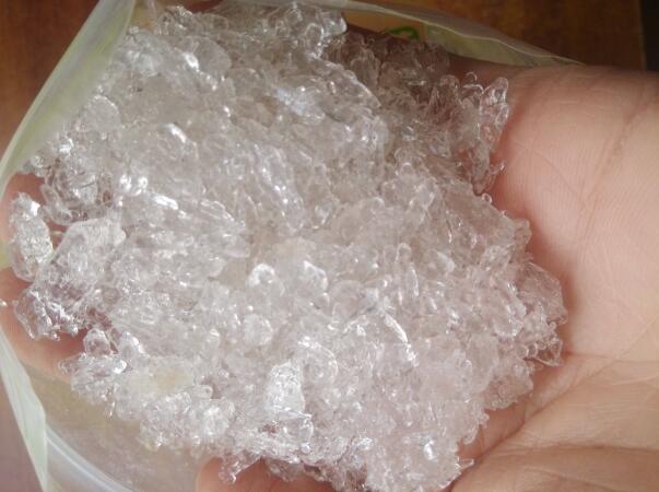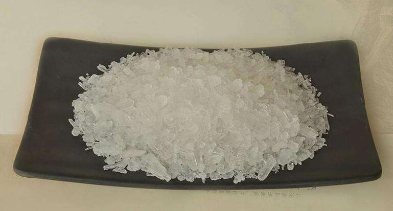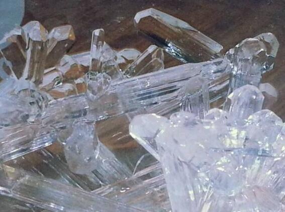 【药材性状】棱柱状、长方形或不规则结晶,两端不整齐,大小不一。无色透明,表面有直棱,暴露空气中则表面渐风化而覆盖一层白色粉末。具玻璃样光泽。质脆,易碎,条痕白色。断口不整齐。无臭,味苦、咸。