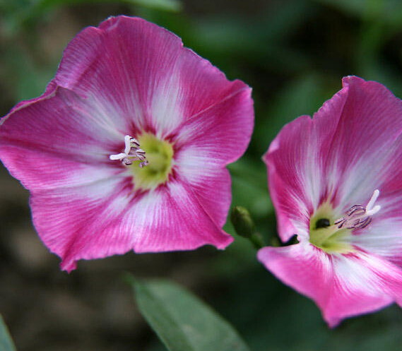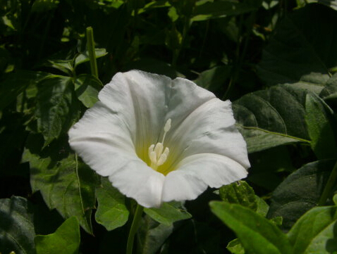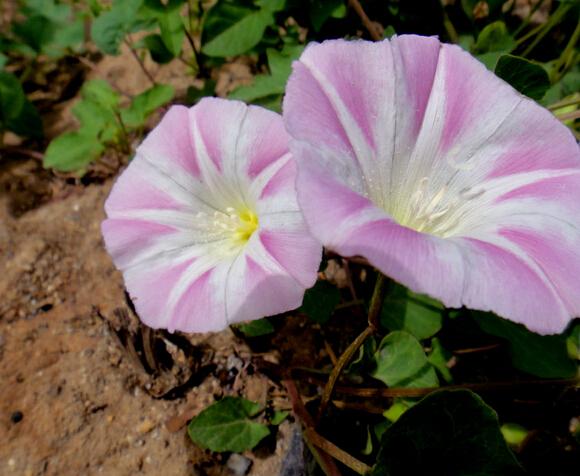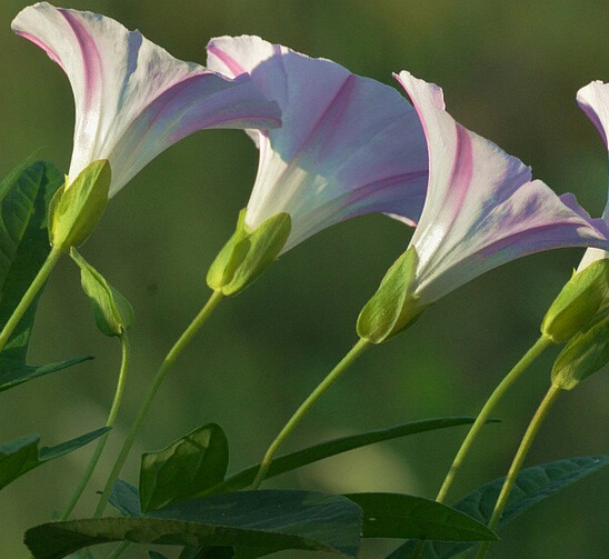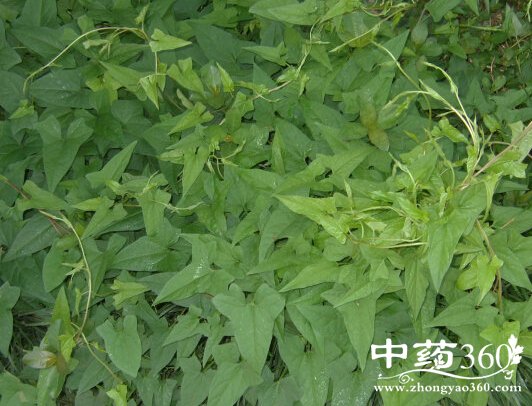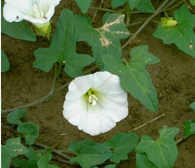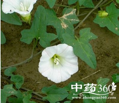 【原形态】 多年生蔓性草本。根茎略粗肥,径4~8毫米。茎纤细,缠绕或匍匐。单叶互生;叶柄较叶片稍短;叶片戟形或3裂,长3.5~8厘米,宽1~3厘米,中裂片最大,侧裂片较短,并再作2浅裂,先端尖,全缘或带波状,基部心脏形。花腋生,单生,花梗较叶柄稍长;苞片2,卵圆形,较大,包围花萼,宿存;花萼裂片长圆形,光滑;花冠漏斗状,长2~4厘米,淡红白色;雄蕊5,内藏;雌蕊1,子房1室,花柱单1,柱头2裂。蒴果卵圆形,稍尖,光滑,有黑色种子4粒。花期5~8月。果期8~10月。