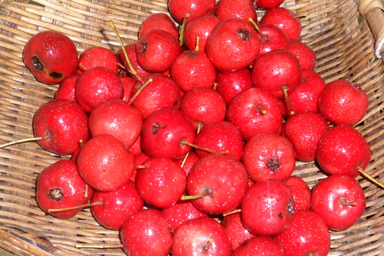 山楂果实味酸稍甜,适于鲜食,因果内含有有红色素和果胶等物质,更适于加工成山楂片、山楂糕、糖果、蜜饯、冰糖葫芦、山楂酱、罐头、果脯、果丹皮、山楂汁、山楂饮料、山楂酒等。最被大家喜爱的就是冰糖葫芦。