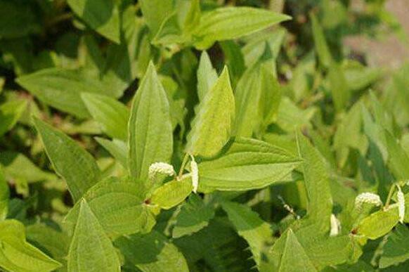 【植物形态】基部心形或耳形,全缘,两面无毛,基出脉5。总状花序1~2枝顶生,花序具2~3片乳白色叶状总苞;花小,无花被,生于苞片腋内;雄蕊6,花丝与花药等长;雌蕊1,由4个合生的心皮组成,子房上位,圆形,柱头4。果实分裂为4个果瓣,分果近球形,表面具多疣状突起,不开裂。种子球形。花期4~8月,果期8~9月。生于沟旁、沼泽等低湿处。