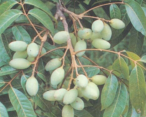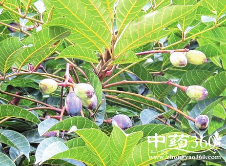 乌榄,常绿大乔木,高10-16m。有胶粘性芳香的树脂。树皮灰褐色,平滑;小枝褐绿色,无毛。奇数羽状复叶互生,长30-65cm;小叶15-21枚,革质,长圆形至卵状椭圆形,长5-15cm,宽3.5-7cm,先端渐尖或锐尖,基部偏斜,全缘,上面有光泽,无毛,下面平滑;网脉两面均明显。花两性或单性花与两性花共存;花序腋生,为疏散的聚伞圆锥花序,长于复叶;萼杯状,3-5裂,在雄花中长约2.5mm,在雌花中长3.5-4mm;花瓣在雌花中长约8mm;雄蕊6,着生于花盘边缘,长不超过花冠;雌蕊无毛,在雄花中不存在,子房上位,通常3室。核果卵形至椭圆形,略呈三角形,长3.5-4.5cm,宽1.5-2cm,成熟时紫黑色,表面平滑,核木质,两端钝,内有种子1-2颗;不肯定适度退化。花期4-5月,果期5-11月。