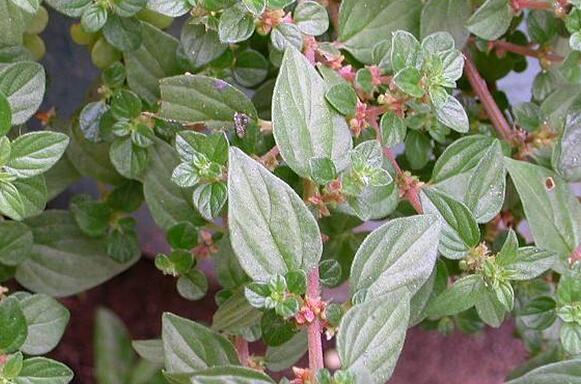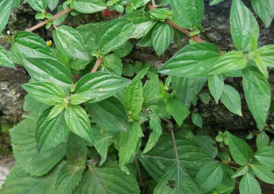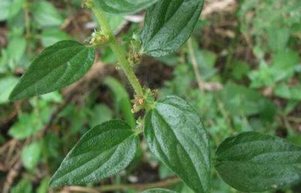多年生草本,长30-90cm。不分枝或下部有1-3对分枝,茎细弱常呈匍匐状,无毛或疏被租毛。叶对生,或茎顶部的叶互生;叶柄长O.3-1.6cm;托叶卵状披针形,脱落;叶片膜质,卵形至宽卵形,长1.5-4cm,宽0.5-2.5cm,先端短尖,基部圆形或钝,全缘,两面疏被贴伏的粗毛,通常下面较密,上面钟乳体点状,稠密,基出脉3条。花小,组成腋生的团伞花序,雌雄花混生;雄花淡绿色或带紫色,花被片卵圆形,长约1mm,先端急尖或呈短芒状,疏被短柔毛,雄蕊4,突出;雌花花被壶状,长约1.5mm,上部2齿裂,被柔毛。瘦果卵形,长约1mm,先端尖,黑色。有光泽。花期4-9月,果期5-10月。