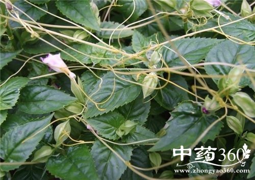 4、水煮法:取少量菟丝子用沸水浸泡后,表面有黏性;加热煮至种皮破裂时,露出黄白色卷须状的胚,形如吐丝,即为正品。