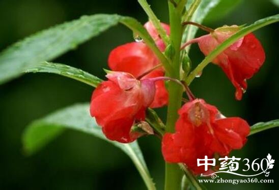 2.祛风止痛:本品具有祛风邪而止痛消肿的作用。《本草纲目》载风仙花;“活血消积。治蛇伤、腰肋引痛。”,《本草求原》载凤仙花“治偏废”。主要治疗因正气不足,脉络空虚,风邪得以乘袭,引动痰湿,流窜经络,致气血滞塞,或气血亏虚,失于运行而致瘀血阻络而出现半身不遂、麻木不仁;或因跌打损伤,肝胁疼痛,瘀血肿胀等。肝为藏血之脏,其经行于两胁,瘀血之疾多从肝治。本品入肝,即可活血通经,又可祛风止痛、消肿,故对于瘀血所致的半身不遂,或跌打损伤之瘀血水肿、胸胁疼痛,能使血散、肿消,经脉通畅,其病可愈。
