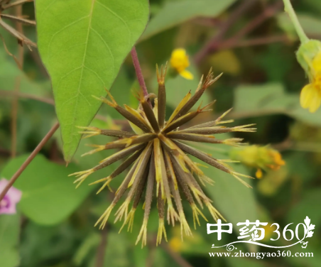 【原形态】一年生草本,高25~100cm。茎直立,四棱形,疏生柔毛或无毛。中下部叶对生,叶片3~7深化裂至羽状复叶,很少下部为单叶,小叶片质薄,卵形或卵状椭圆形,有锯齿或分裂,下部叶有长叶柄,向上逐渐变短;上部叶互生,3裂或不裂,线状披针形。头状花序开花时直径约为8mm,有长梗;总苞片7~8,匙形,边缘有细软毛;外层托片狭长圆形,内层托片狭披针形;舌状花白色或黄色,4~7朵或有时无,部分不育;管状花黄褐色,长约4.5mm,5裂。瘦果线形,成熟后黑褐色,长7~15mm,有硬毛;冠毛芒刺状,3~4枚,长1.5~2.5mm。花果期9~11月。